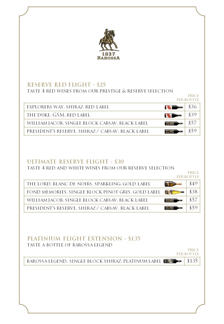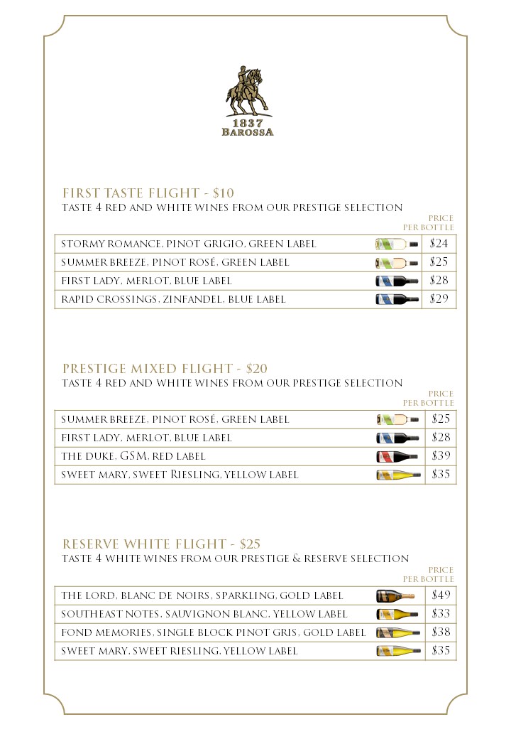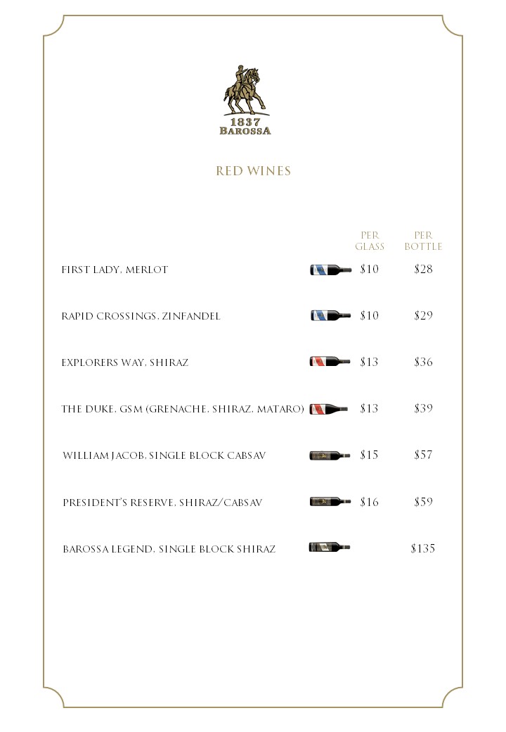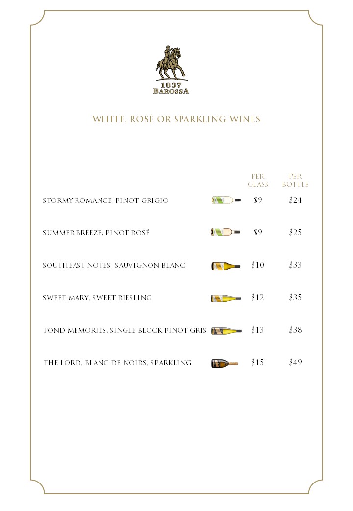 1837 Barossa Restaurant – Wine & Food Menu